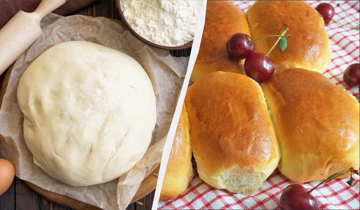 Zacht gistdeeg voor pirozhki in de oven wordt bereid volgens dit recept / collage My, foto depositphotos.com, screenshot YouTube